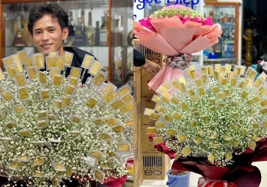 Quà 8/3 vip nhất ai cũng phải trầm trồ: Đại gia Cần Thơ đặt bó hoa đặc biệt làm từ 100 cây vàng tặng...