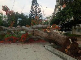 Thêm 1 cây phượng bất ngờ bật gốc, đổ gục trong sân trường
